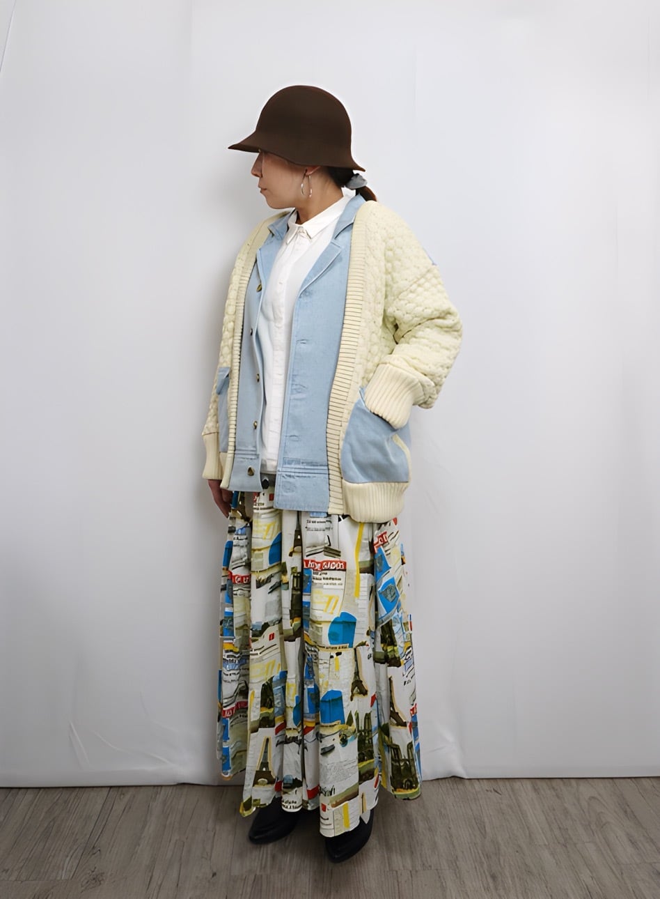 着用モデル:身長156㎝ 着用カラー:10Natural系絵はがき 21Beigeイス柄
