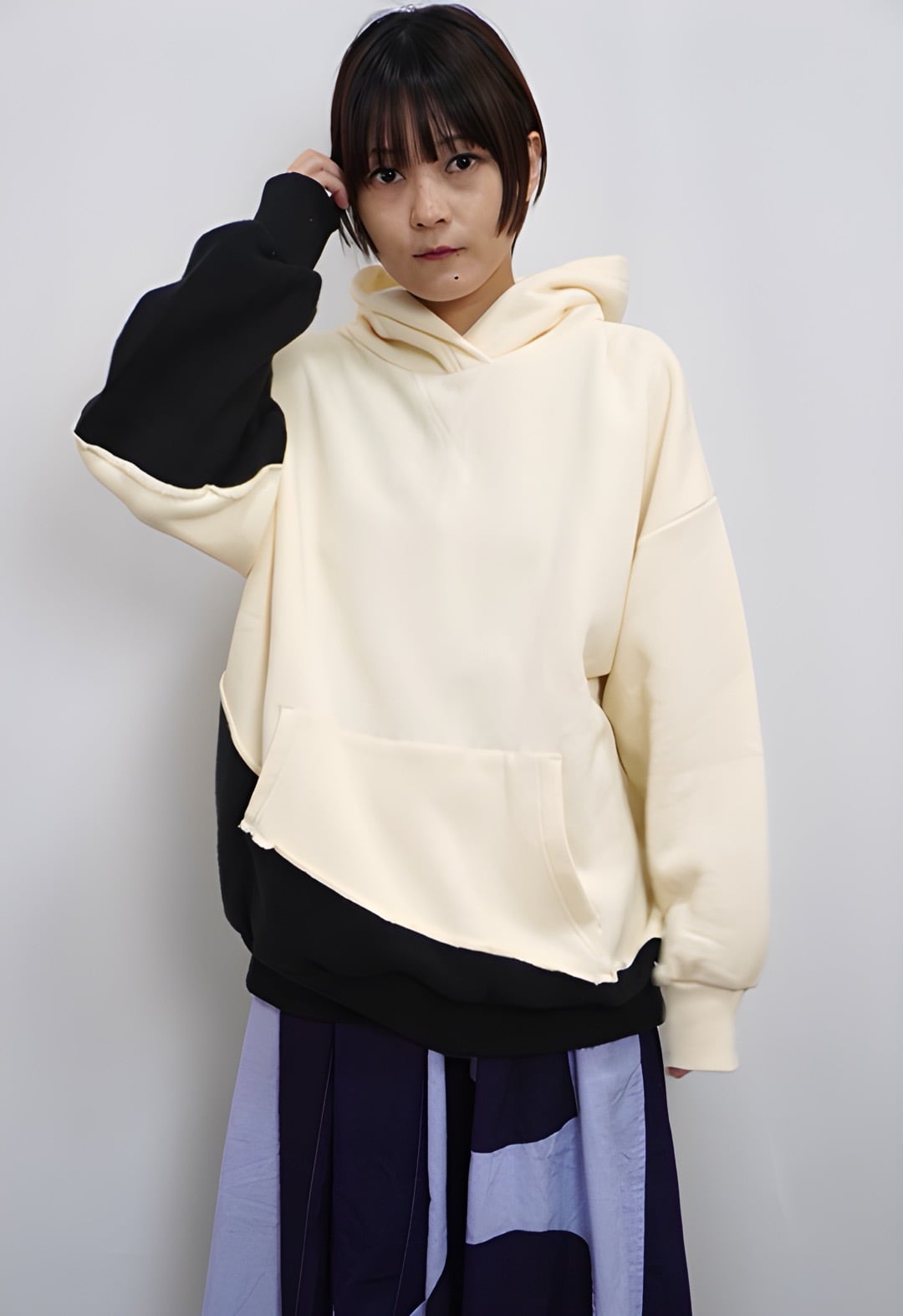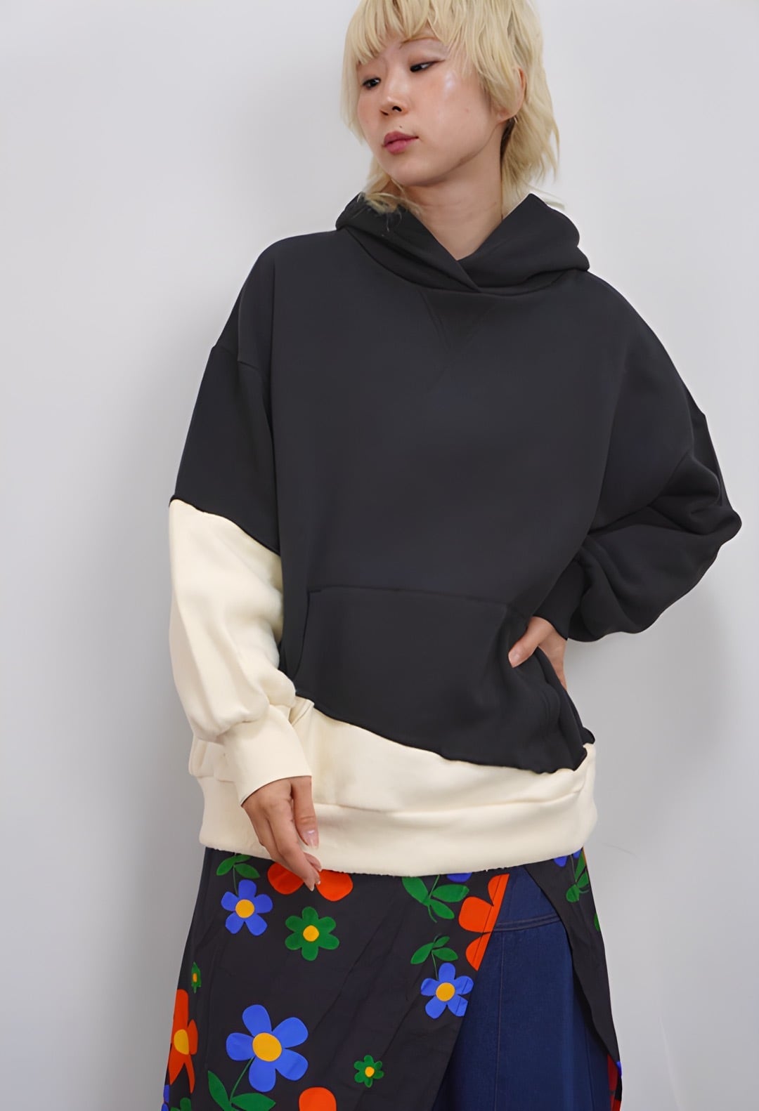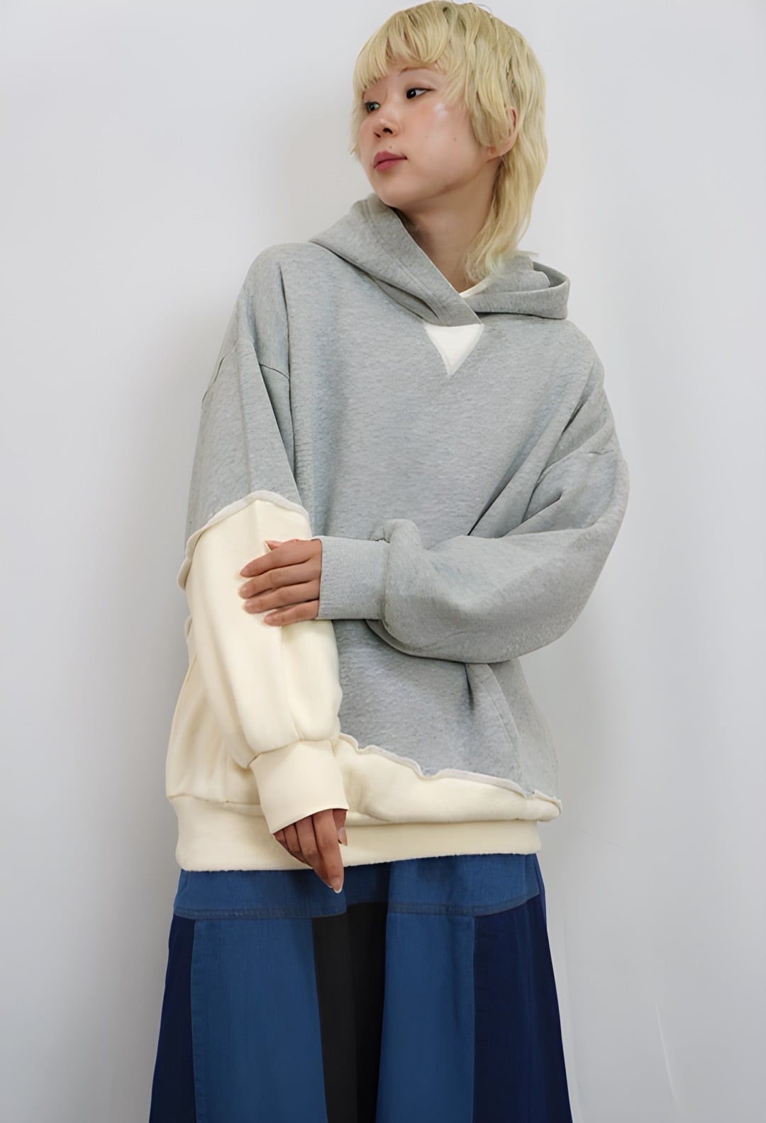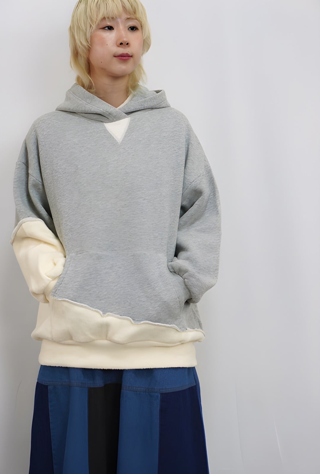fu-dueka:: 吊り裏毛 起毛 配色フードプルオーバー