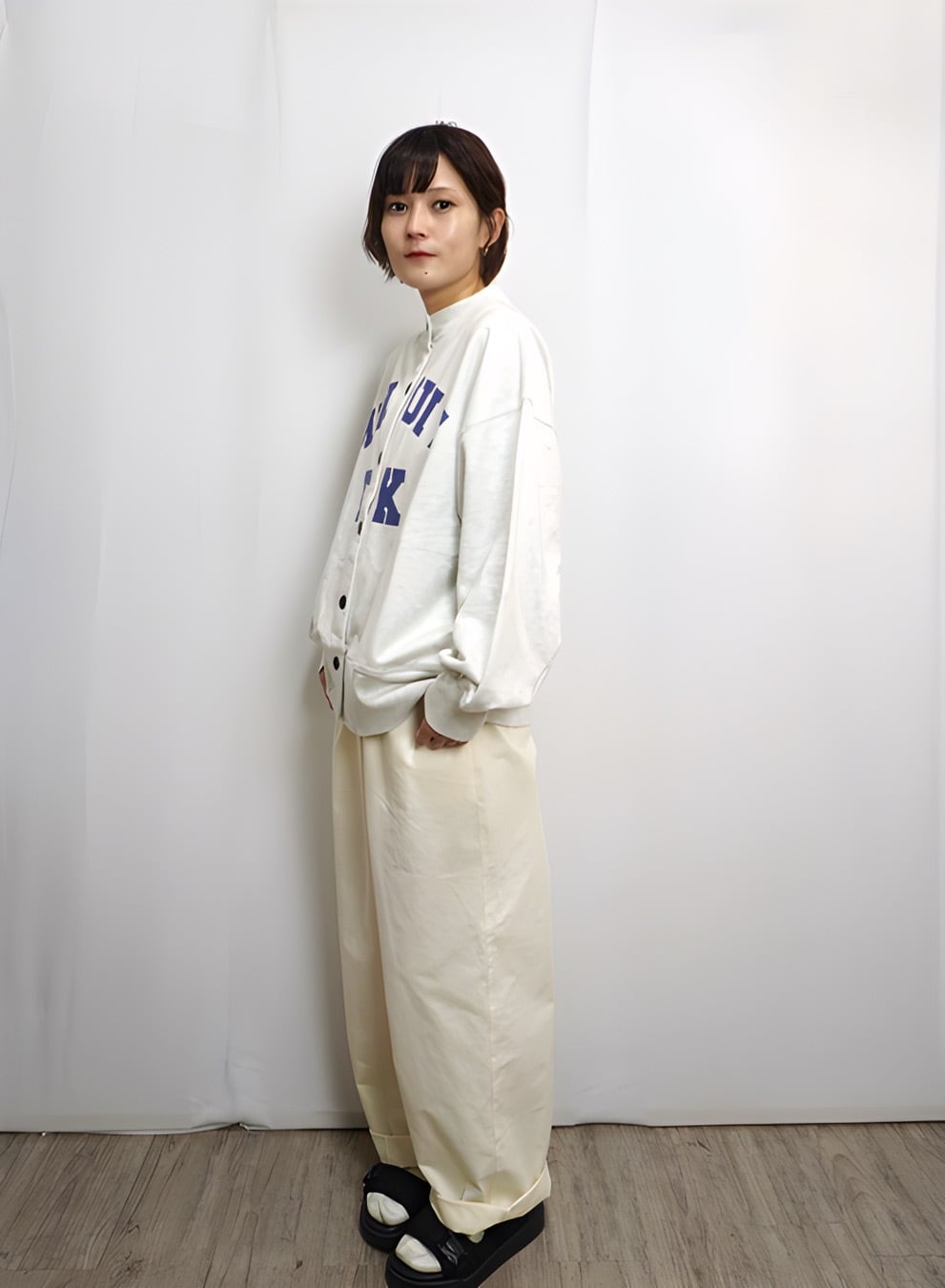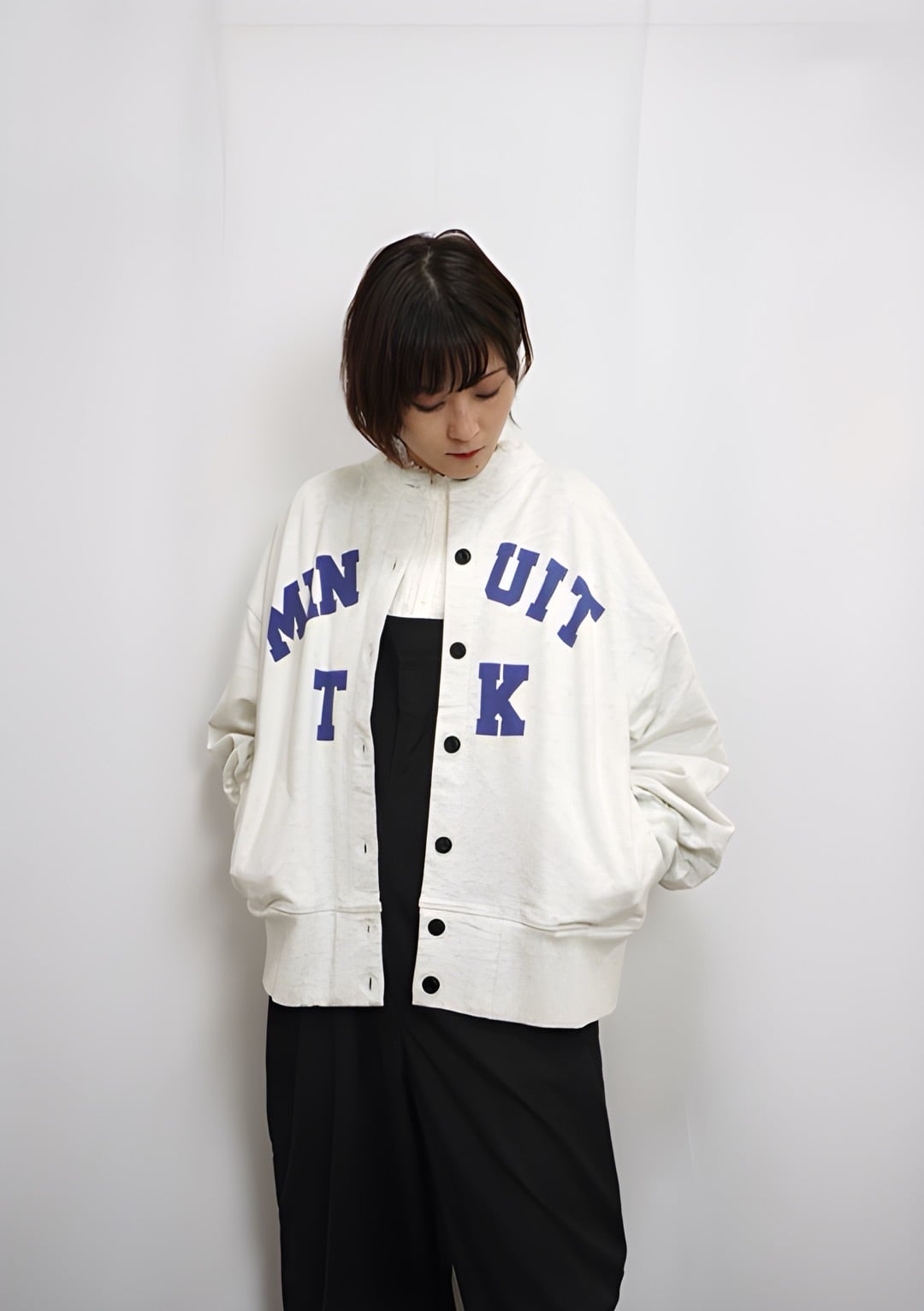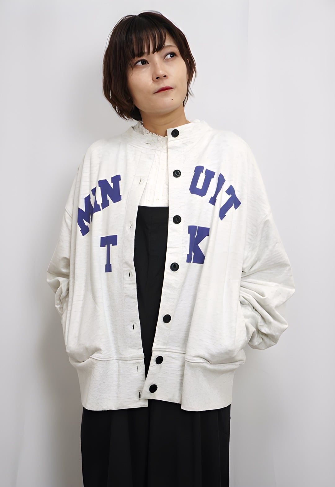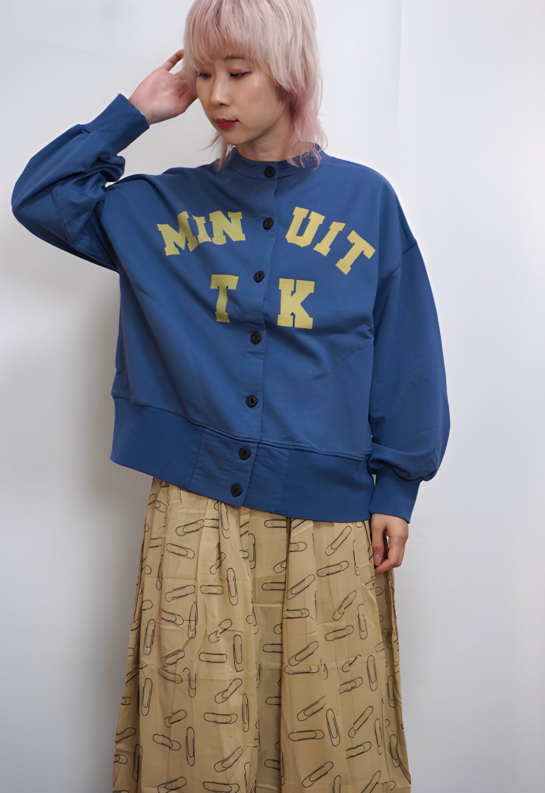 着用モデル:身長154㎝ 着用カラー:70Blue・13Gray杢