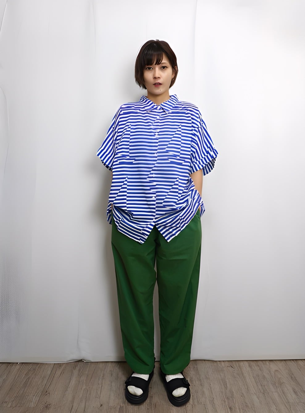 着用モデル:身長154㎝・167㎝ 着用カラー:70Blue・61Green・10White