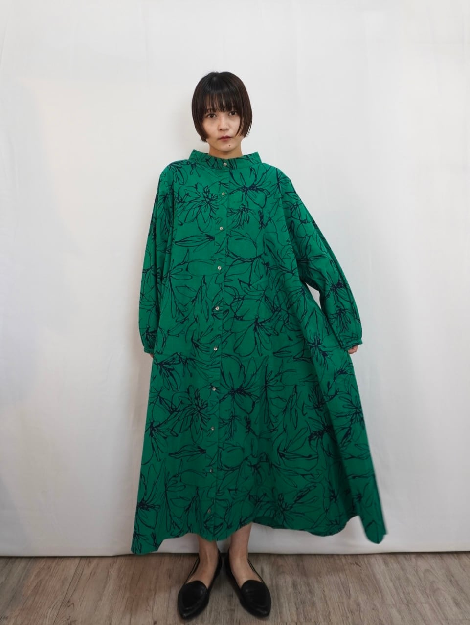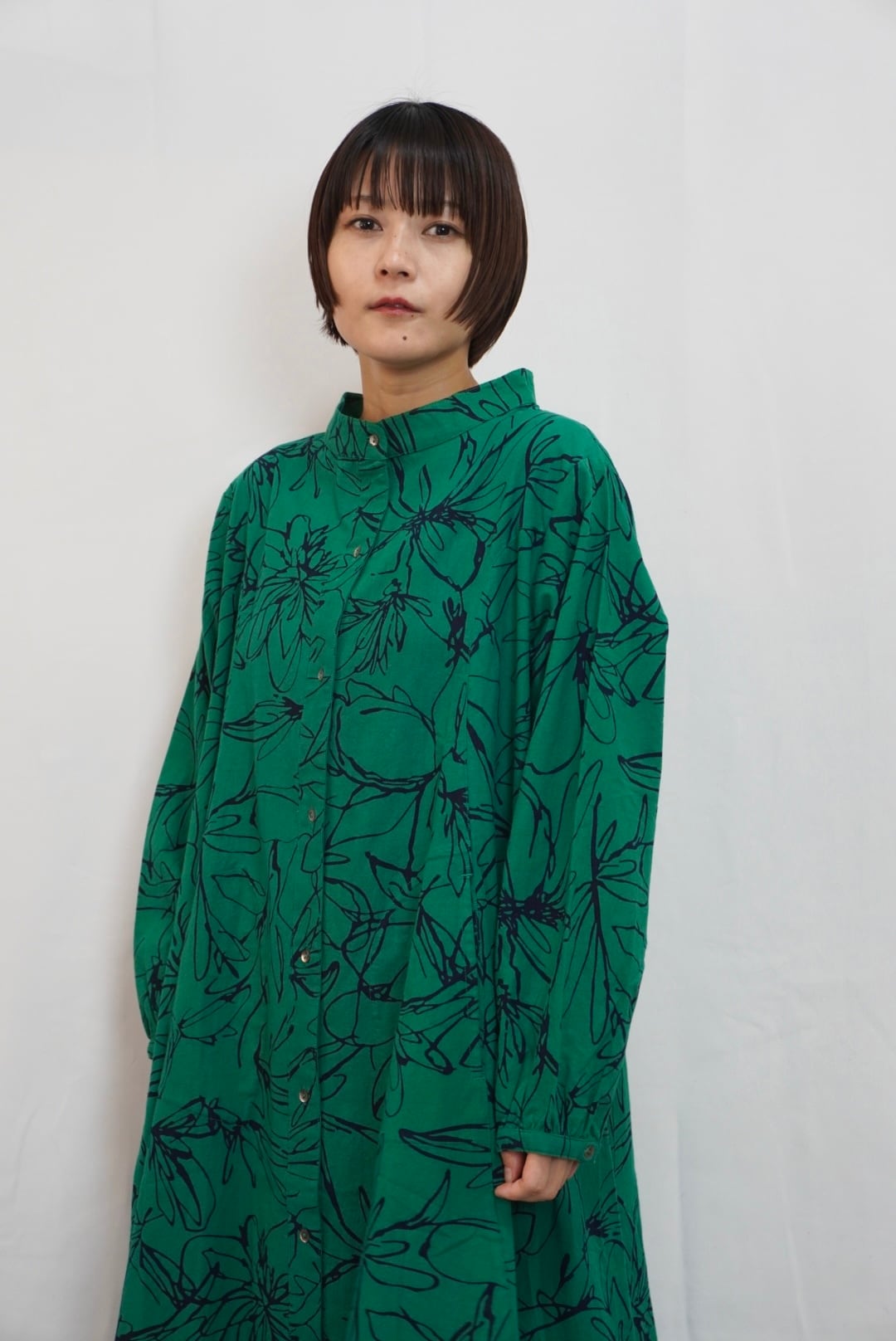 着用モデル:身長154cm 着用カラー:72Green×Navy、15Beige×Black