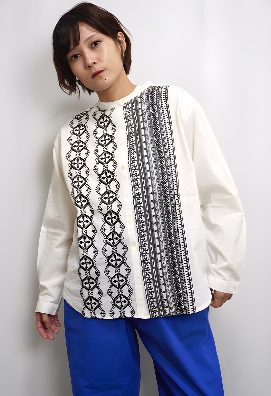 fu-dueka:: Sheeting刺繍 スタンドシャツ