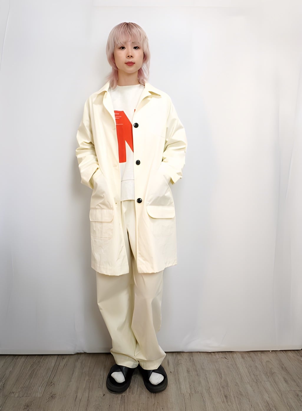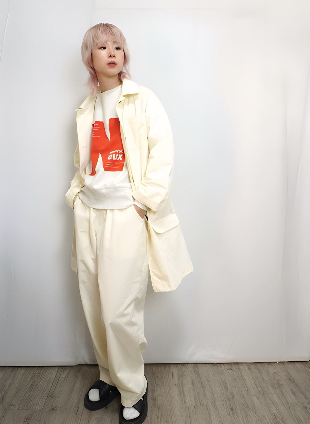着用モデル:身長167cm 着用カラー: 21Beige 10White