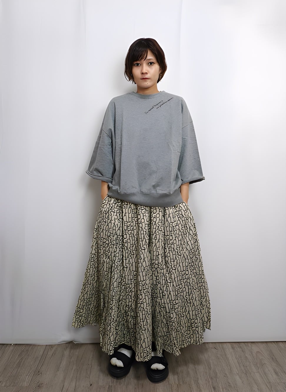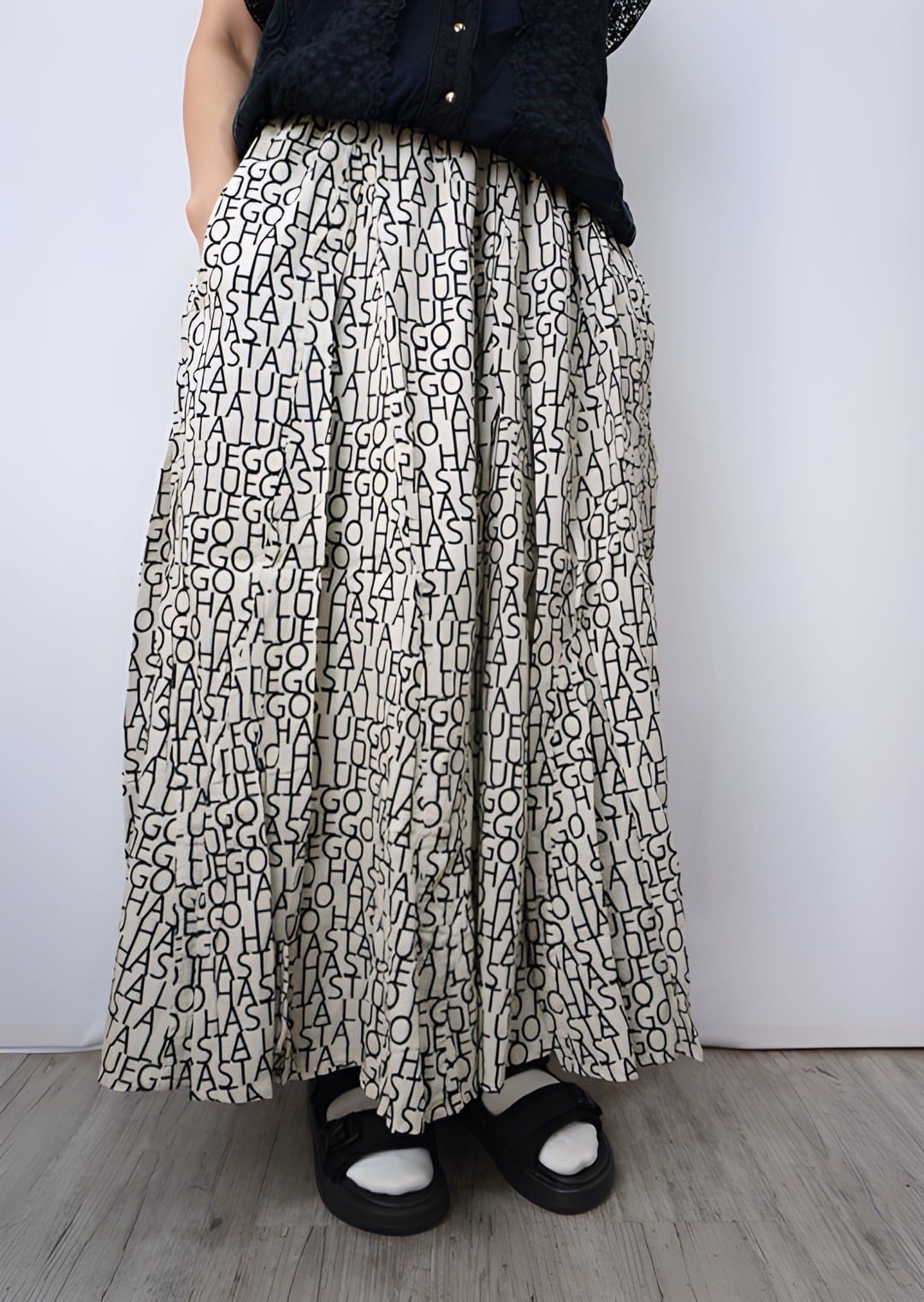 fu-dueka:: コードコットン ロゴpt サーキュラースカート