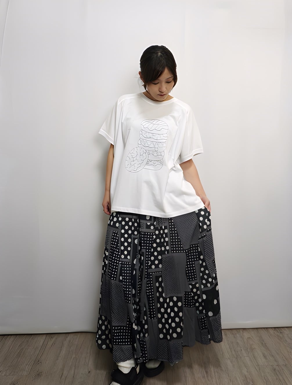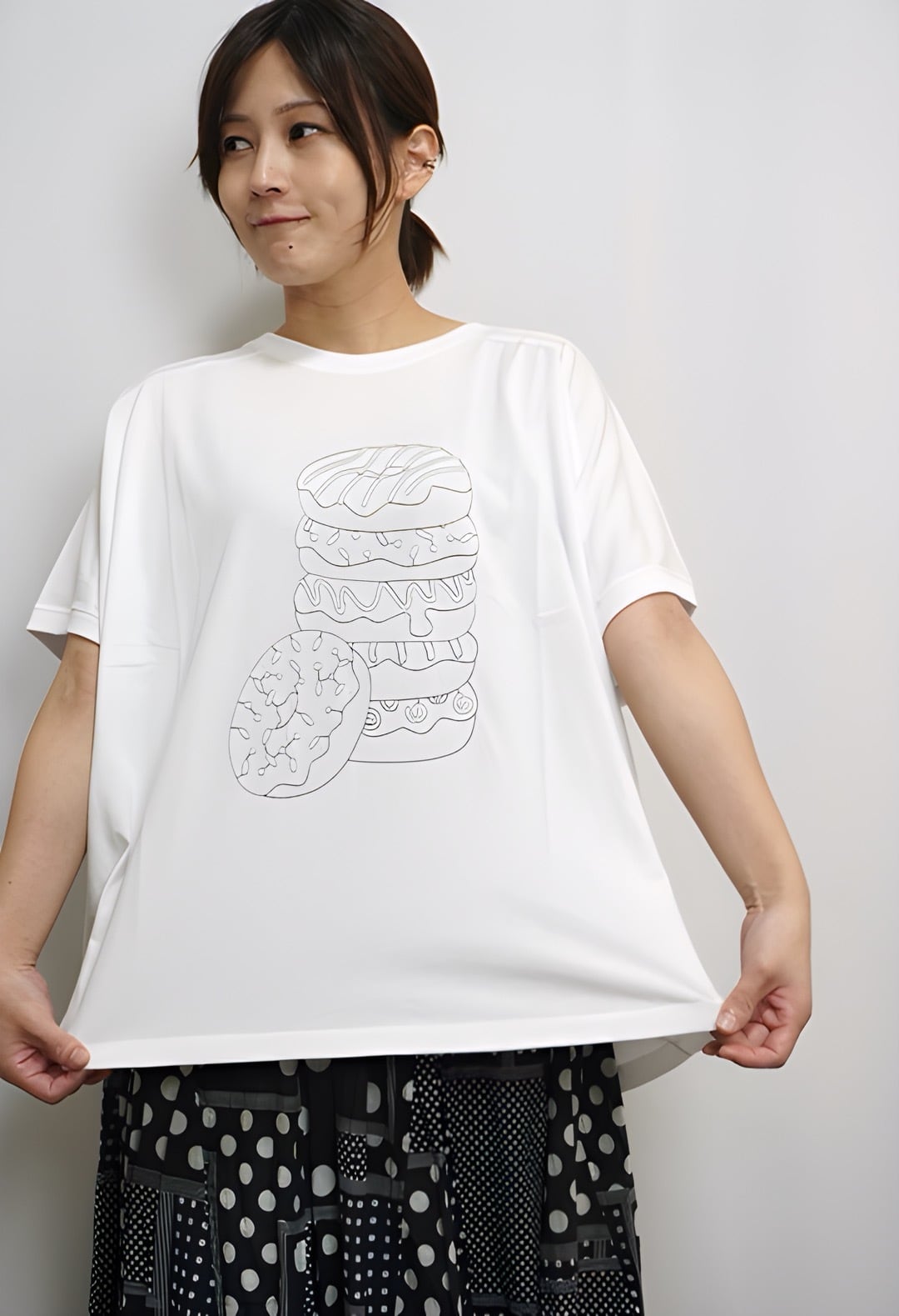 fu-dueka:: 良質天竺 変形ワイドドーナツ刺繍Tee