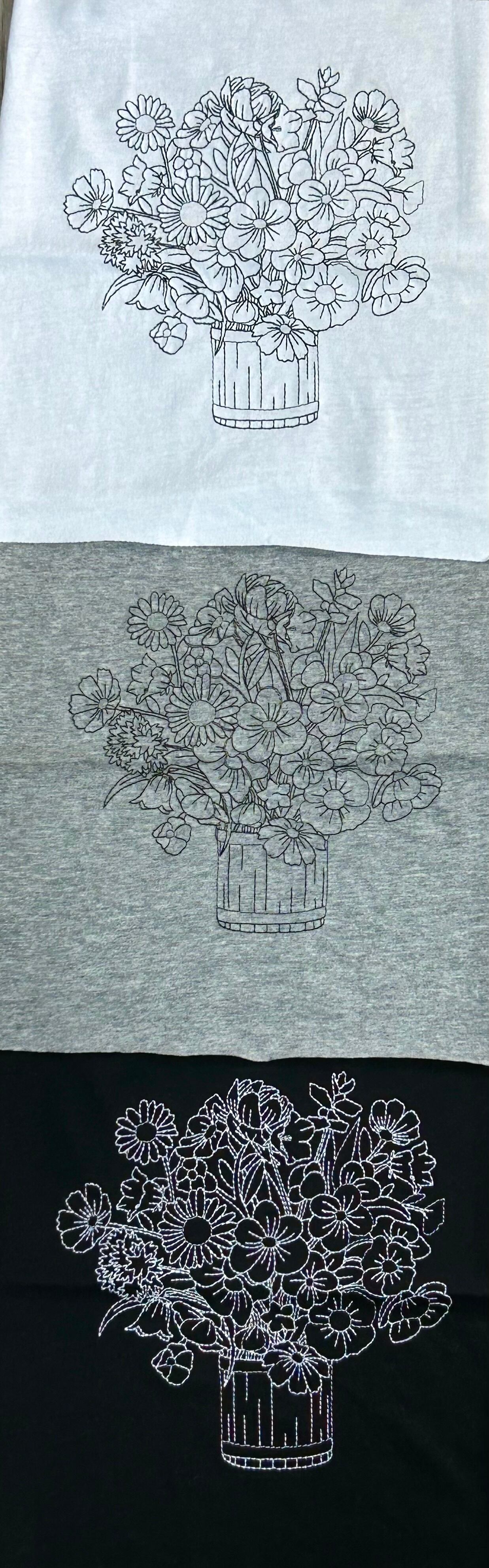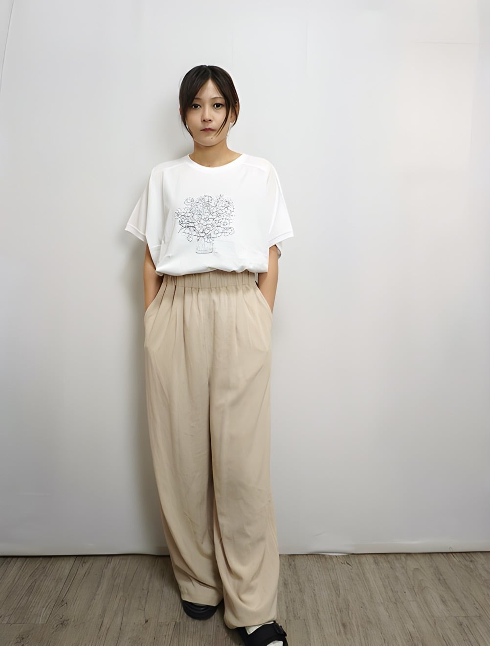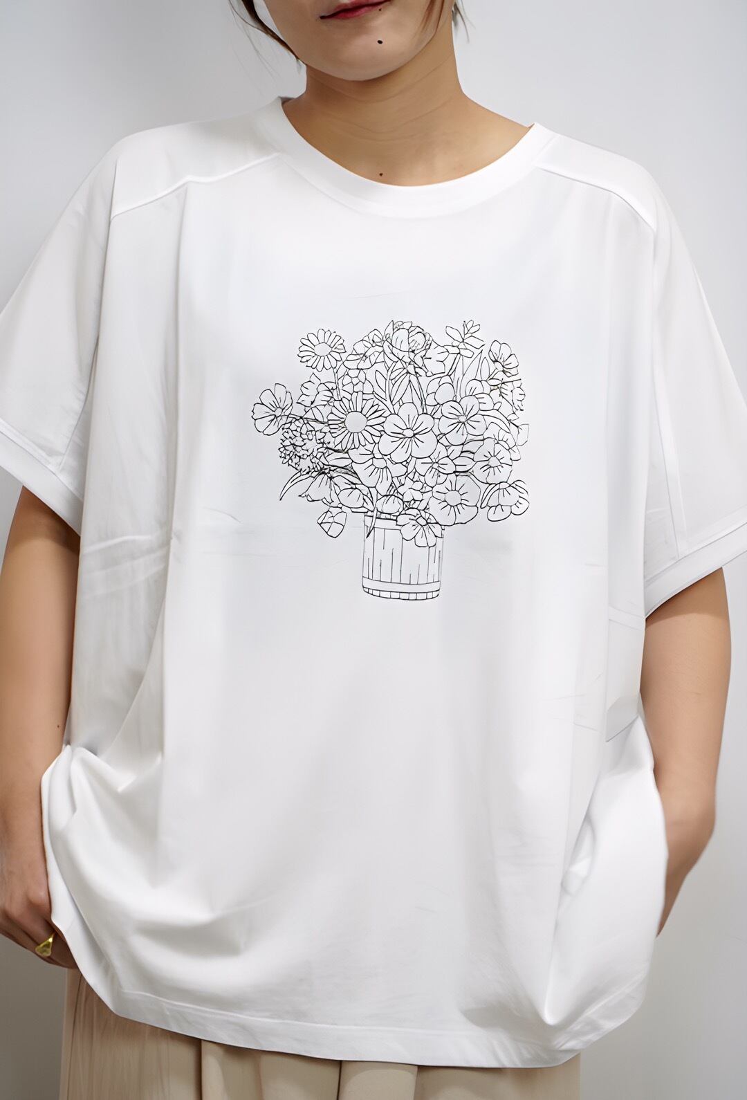 fu-dueka:: 良質天竺 変形ワイド花束刺繍Tee